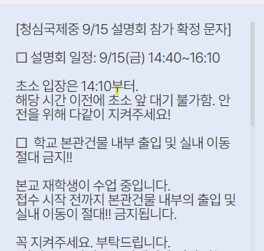 | 3 | ¢º ¼³¸íȸ Âü¼® ¾È³» ¹®ÀÚ ¼ö·É ÈÄ Ãâ·Â : 9/12(¸ñ) ½Åû¼¿¡ ±âÀçÇÑ ÀüȹøÈ£·Î ¹ß¼ÛµÊ ¡Ø ¼ö½ÅµÈ ¹®ÀÚ(¿ìÃø »çÁø ÀÚ·á)¸¦ ĸÃĸ¦ ÇÑ ÈÄ Á÷Á¢ Ãâ·Â(Àμâ)ÇÏ¿© Â÷·® Á¶¼ö¼® Àü¸é¿¡ ³õ¾Æ¼ °ü°èÀÚ°¡ È®ÀÎ ÈÄ ÃâÀÔ ¾È³»ÇÒ ¼ö ÀÖµµ·Ï ÇùÁ¶ÇØÁÖ¼¼¿ä. - ÇØ´ç ¹®ÀÚ È®ÀÎ ºÒ°¡ÇÒ °æ¿ì, ±³³» ÀÔÀå Á¦ÇÑµÊ - 9/12(¸ñ) 14½Ã±îÁö ¹Ì ¼ö·É ½Ã, º»±³·Î ¹®ÀÇ ÇÊ¿ä |